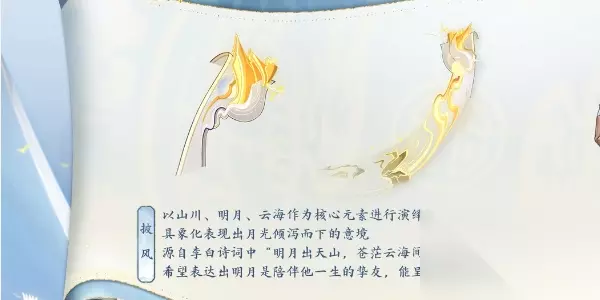 5、武器: 灵感来源于“仙人垂两足,桂树何团团”,桂花与山月交织呼应,三分剑气的洒脱质感象征着李白的人生状态中的烂漫无拘。