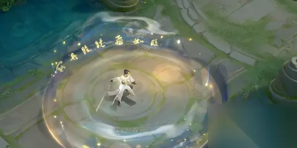 三、技能特效 以山水、白鹭及画卷为主要元素构建了技能特效,他在山水、白鹭与画卷之中举杯望月,“唯愿当歌对酒时,月光长照金樽里"尽显诗仙的飘逸随性、洒脱不羁的性格。 1、被动印记: 持剑而击,“把酒问月”四字印记逐—显现,四层印记叠满后一轮圆月现于身下,“今月曾经照古人"伴随着月光飘然而起。