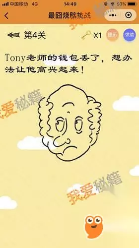 《最囧烧脑挑战》是一款类似最囧挑战系列的一款游戏,该游戏目前一共是有60关,难度不能说的是递增的,但是可以说是每一关都不简单,下面给大家分享最囧烧脑挑战全关卡答案,持续更新,喜欢可收藏本页! 微信最囧烧脑挑战攻略 最囧烧脑挑战1-10关答案通关攻略: 第1关: