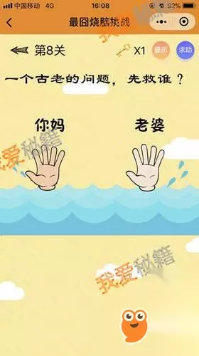 答案:把手机倒过来就可以看出规律了,所以正确答案是87哦。 第2关: