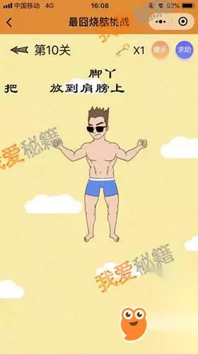 答案:把题目中的脚丫两字移到肩膀上即可。 第11关: