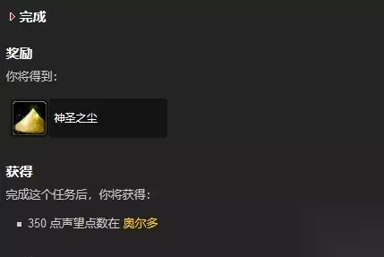 在魔兽世界这款游戏中,一个邪能装备可以增加350点奥尔多声望。当玩家在交邪能装备任务的时候,可以获得1个神圣之尘,并提升350点奥尔多声望,若玩家的角色种族为人类,将会获得385点奥尔多声望。