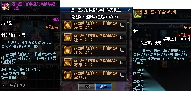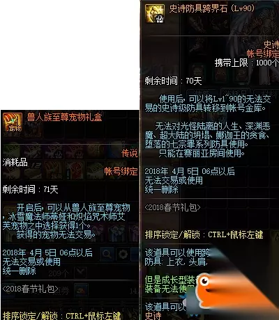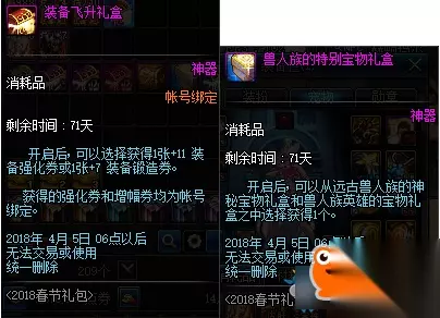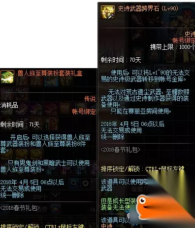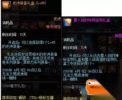 购买第6/18套赠送1个史诗装备礼盒(Lv85,自选85所有史诗)&1个兽人族的特别宝物礼盒