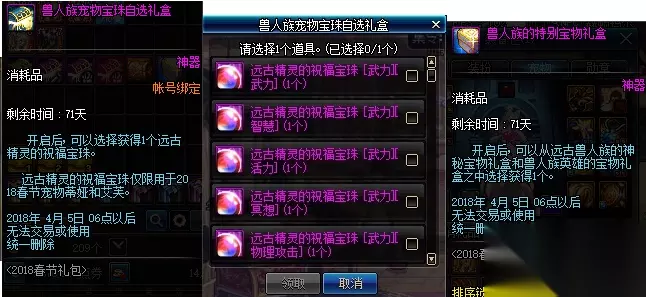 购买第5/17套赠送1个兽人族宠物宝珠自选礼盒&2个兽人族的特别宝物礼盒