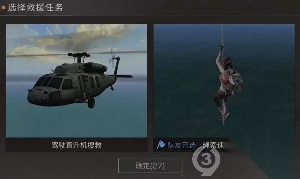 幸存者们可于每日18:00~23:00 前往营地公告板与营友组队参与救援 (市长可设置具体开启时间) 队员进入可选择救援任务: 驾驶直升机或绳索速降