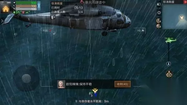 分工完成即可开始救援行动 在海面上,你们将会遭受到 暴风雨与雷电等恶劣天气的干扰 请做好万全准备 驾驶直升机 选择驾驶直升机搜救的队员