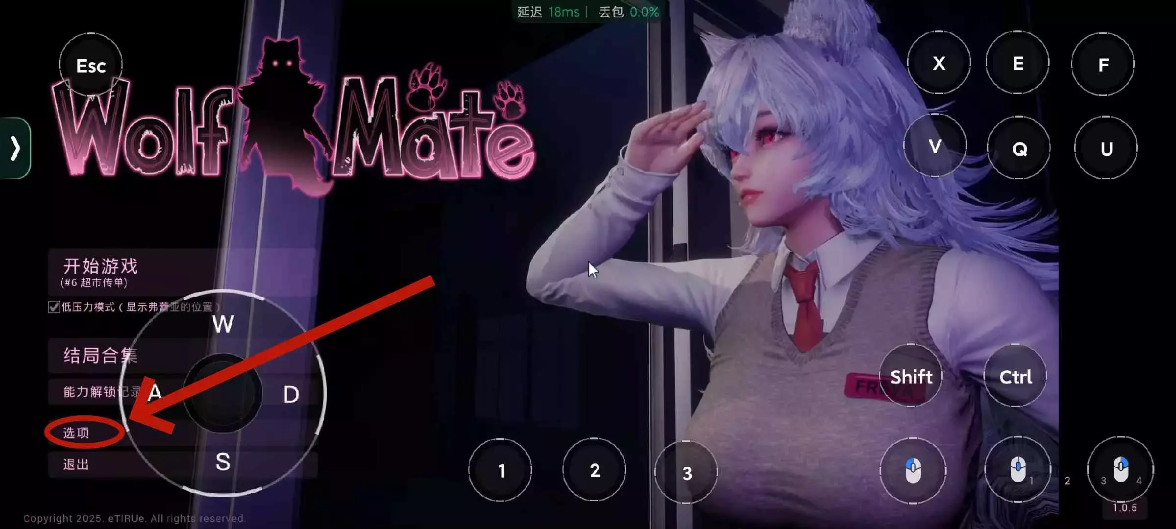 在主界面点击【选项】,进入游戏设置界面(如下图)