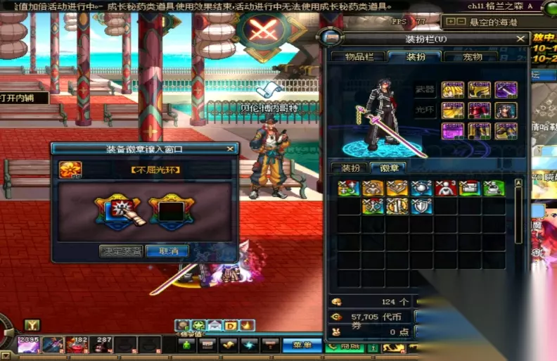 徽章镶嵌方法: 徽章是特殊的装备道具,可以在装备的孔中镶嵌以提升角色属性。以下是徽章镶嵌操作步骤: 1. 找到已经打孔的装备并进入装备界面。 2. 在装备界面的右上角,点击"孔"按钮。 3. 弹出的打孔界面中,您可以选择要进行镶嵌的孔的位置。 4. 点击您想要镶嵌的孔,系统将弹出一个徽章选择界面。 5. 在徽章选择界面中,选择您想要镶嵌的徽章并点击"确认"按钮。 6. 确认后,系统将消耗相应的徽章以及镶嵌所需的费用,并成功将徽章镶嵌进装备孔中。