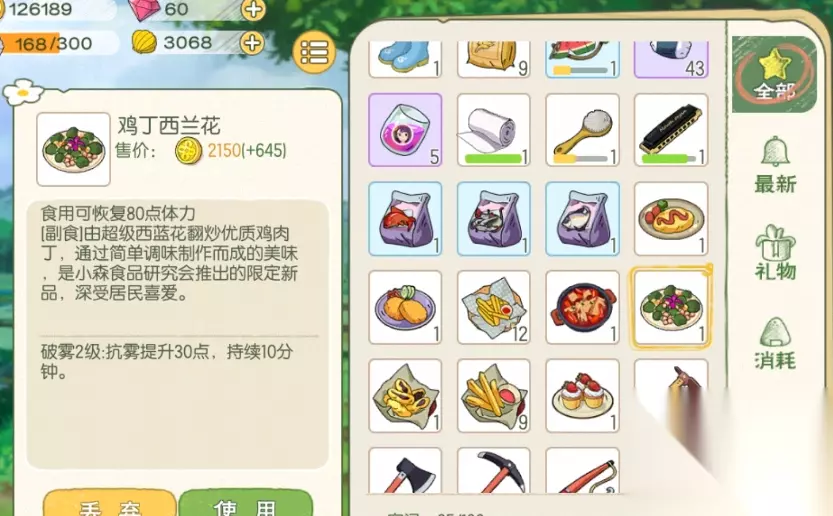 《小森生活》抗雾料理配方及制作方法一览 1、抗雾服装 前往制衣间制作不同抗性的服装,三级制衣间可以制作抗雾服装; 当森气值达到36级之后可前往海岛地图获取材料,升级三级制衣间; 2、抗雾料理 【可乐饼】 配方:3个土豆加上一块蜘蛛,一个洋葱或者4个牛奶 效果:可提升60体力,有效抗雾时间是3分钟; 【鸡丁西兰花】 配方:超级西蓝花3个以及鸡肉3个 效果:可提升60的体力,抗雾时间长达10分钟;