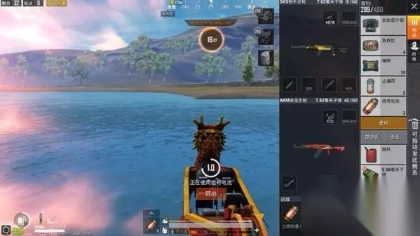 这一局游戏小编的运气不错。运输飞机的航线正好是对准了“出生岛”方向,并且航线的尽头就是海边。由于游戏现在还是处于“端午节”的活动时间内,所以小编找到了一艘“龙舟”,正式向着“出生岛”前进。