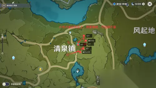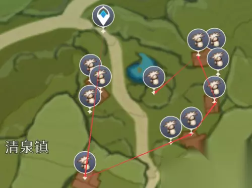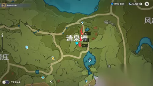 二、清泉镇采集路线 在湖泊上方有许多慕风蘑菇,还有的会刷新在大风车上面。