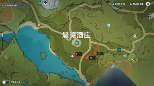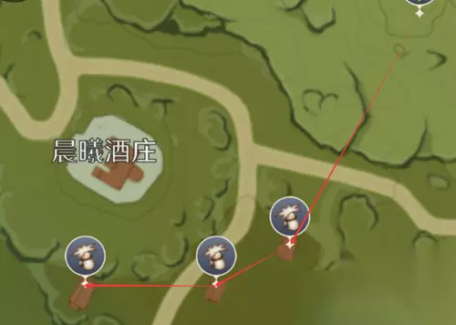 三、晨曦酒庄采集路线 从七天神像那飞过去,沿着东边道路采集。
