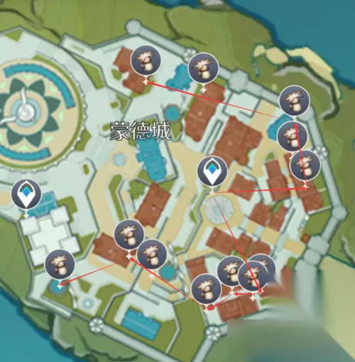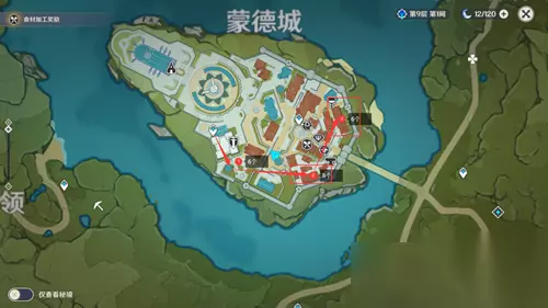 一、蒙德城采集路线 来到城市所在的岛屿上,绕着东海岸采集。