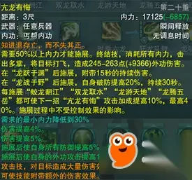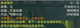 作为搭配连招使用(该奇穴目前只能八层使用,一掌不可以)。如果能把所有的ACT打出来,伤害是比一掌要高的,且能打出更顺畅的连招。 第十一重的明辨,现在并不如龙头伤害,解放了无咎作为PVP常驻奇穴。 削弱了有攸附带的龙头伤害由原来的100%下调至50%。削弱了邪教一掌丐,将Buff叠加好后的龙头伤害由原来的210%降低至200%,从数值上来看也是可以玩的,且提高了生存能力。 5.乘龙戏水 新增加的技能,提供三次10%的减伤(技能层数问题参考天策的御),获得破绽的目标可以施展后续的连招搭配奇穴为十二重的神龙降世。