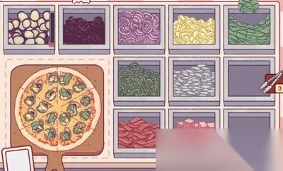 其它披萨配方: 经典肉类披萨:酱汁、奶酪、辣肠、猪肉粒。 猪肉爱好者披萨:酱汁、奶酪、辣肠、猪肉粒、培根、火腿。 玛格丽特(塔):酱汁、奶酪、罗勒叶。 绿梦披萨:酱汁、奶酪、青椒、罗勒叶。 素食披萨:酱料、奶酪、蘑菇、橄榄、洋葱、青椒、菠萝、罗勒叶。(除了几种肉类材料) 素食披萨:素食披萨除奶酪。 咸水手披萨:酱汁、奶酪、凤尾鱼、橄榄。 超至尊披萨(至尊披萨):酱料、奶酪、辣肠、猪肉粒、蘑菇、橄榄、洋葱、青椒。 猪肉披萨:酱汁、奶酪、辣肠、猪肉粒、培根、火腿、橄榄、青椒、菠萝。 干沙滩披萨:一半放酱汁,凤尾鱼;一半什么都不放。 小丑披萨:酱汁、奶酪、辣肠、青椒、茄子。 早餐披萨:酱汁、奶酪、猪肉粒、培根、火腿、蘑菇、洋葱。 卡布里秋莎披萨:酱汁、奶酪、火腿、蘑菇、橄榄。 (青椒、橄榄、菠萝都是水果!四种肉都是猪肉!食材不需要摆放整齐,一般可以! 节省时间小贴士:一次摊两个蛋糕,抹红酱的时候抹两个(因为客户需要少数不加酱披萨的情况),然后烤披萨的时候放一个面饼,系统不会重新打开。但是这种方法要注意时间。这种方法晚上8点以后不适用,容易浪费面饼。 如果你想了解更多的游戏策略,请注意这个网站。