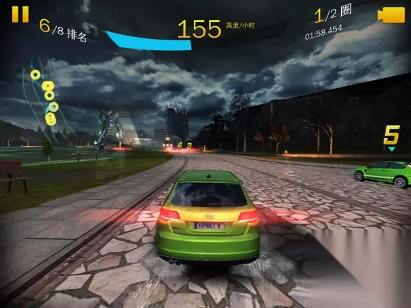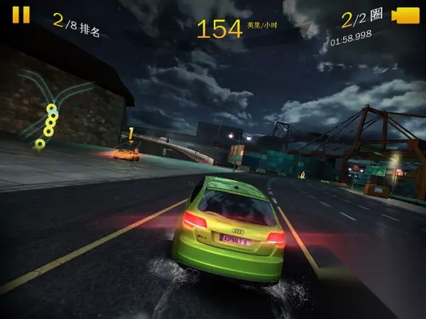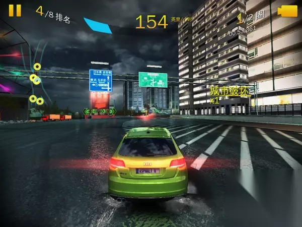 算是本次A8中最闹心的图了。本张图不但岔路多,而且需要极高的熟悉度,不然一个不小心就多走路,或是直接撞墙了。首先一开始飘过两个弯,然后进入右边的小道,然后跳过巴士做个特技动作获得氮气奖励。 接着有个三岔路口,这里从中间的酒店穿进去是最捷径的,然后直接氮气喷射过去即可。