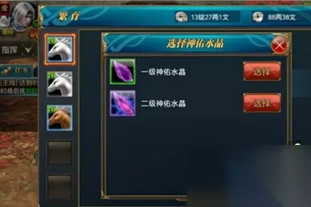 坐骑获取途径 1、参与家族养马任务与击杀盗贼首领均可获得坐骑。 2、在斩龙脉任务中的奖励部分亦有坐骑可得。 3、从寄售行购买其他玩家出售的马牌,同样能获取品质优秀的一代马匹。 4、利用神佑水晶进行繁育,有机会生产出品质更佳的马匹。 5、水晶可从游戏商城或金券商城购买。