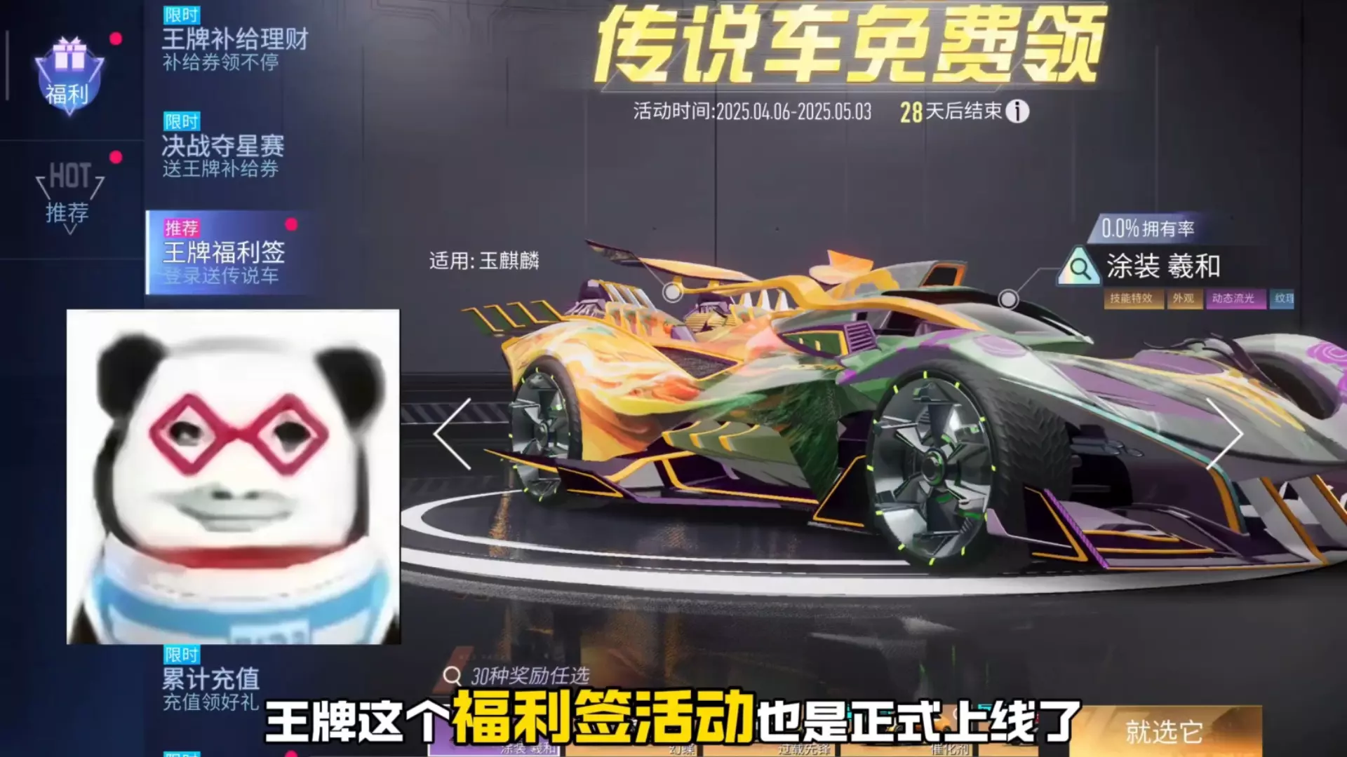 《王牌竞速》在2025.02.14-2025.03.16开启福利活动,玩家参与王牌福利签累计签到12天,就能免费领取神剑号的深海狂鲨永久涂装,还有王牌补给券福利。