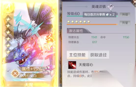 再分享一个毁天灭地的小玩法,就是兽卡主位带风刃,释放毁天灭地的时候会瞬移到对方背后。此玩法尤其是在秘境中特别好用,秘境中可以通过消耗元宝助威增加生命值上限,提高毁天灭地伤害,直接闪现到对面的人群中,连万神露都省了,如果常规进去炸毁天,不吃万神露是炸不出效果的。 再说说克制,我们都知道兽兽的格挡会减少50%的伤害,那么我们就从格挡入手。没错就是它:天魔。减少1400的格挡持续8秒,冷却10秒,基本算是全程覆盖DEBUFF,最可怕的是它不是唯一的DEBUFF,是可以叠加的。多人佩戴的情况下,那么兽兽的格挡直接嘎,以我现在112.27%的格挡为例,一个人带天魔我就只有100%的格挡,削得有点惨。