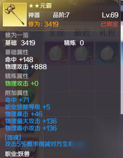 而我们的兽兽可以不通过炼置也可以改变装备的基础属性。