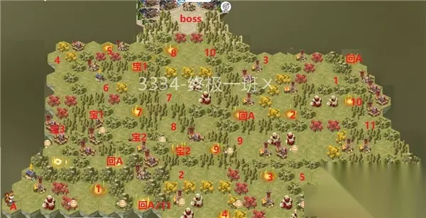 大概整理了一下,希望能派上用场。 路线:以下黄=黄酒,红=红酒 A-红-1-2-黄-3-2-4-5-红-6-7-黄-8-9-红-10-BOSS-宝2-11(隐藏)-回A A-红-1-2-黄-3-2-4-5-6-宝1-回A A-红-1-2-黄-3-2-4-5-红-6-7-黄-8-宝2-回A A-红-1-2-黄-3-2-红-4-宝3-回A A-红-1-2-黄-3-2-4-5-红-6-5-宝4-回A 注1:目前测试只有打败BOSS,11入口才开放(也可能有其他条件,11隐藏最后拿就是了),走宝2只能直接回到起点。 注2:4个宝物守将等级较高,而且不能回头,实力不足的情况下建议最后再打,开荒的话一定要直取BOSS。