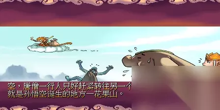 花果山是很有趣的一个关卡,不但有众多的迷你游戏,也是得到经书的简单关卡。我们在《西游释厄传2》的开机演示里,看到有类似《沙罗曼蛇》的横版射击小游戏,就是在这一关卡里。