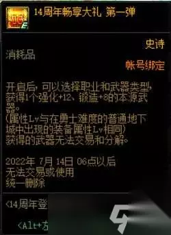 dnf2022周年庆奖励介绍 第一个部分是12锻八的本源武器;