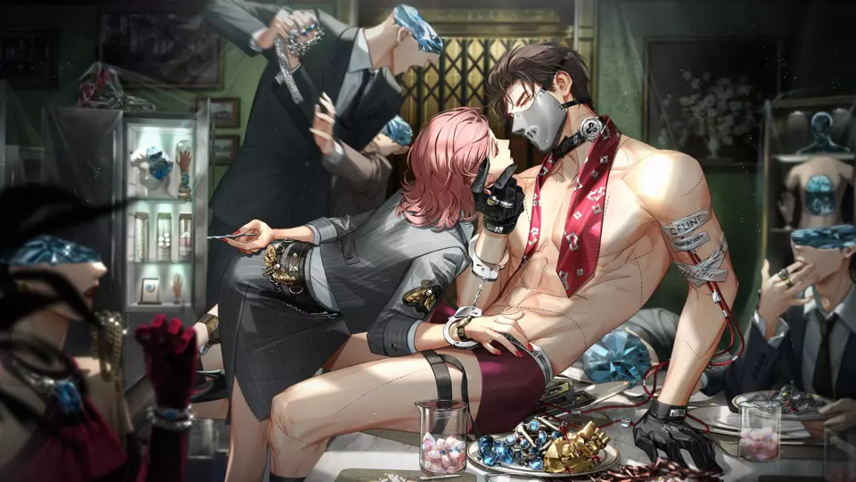 这是恋爱养成游戏《光与夜之恋》中萧逸的6星灵犀「极热狂想」的胶片剧情沉湎之时互动内容,展现了萧逸与玩家角色间暧昧又充满张力的对话,尽显其危险又迷人的特质。