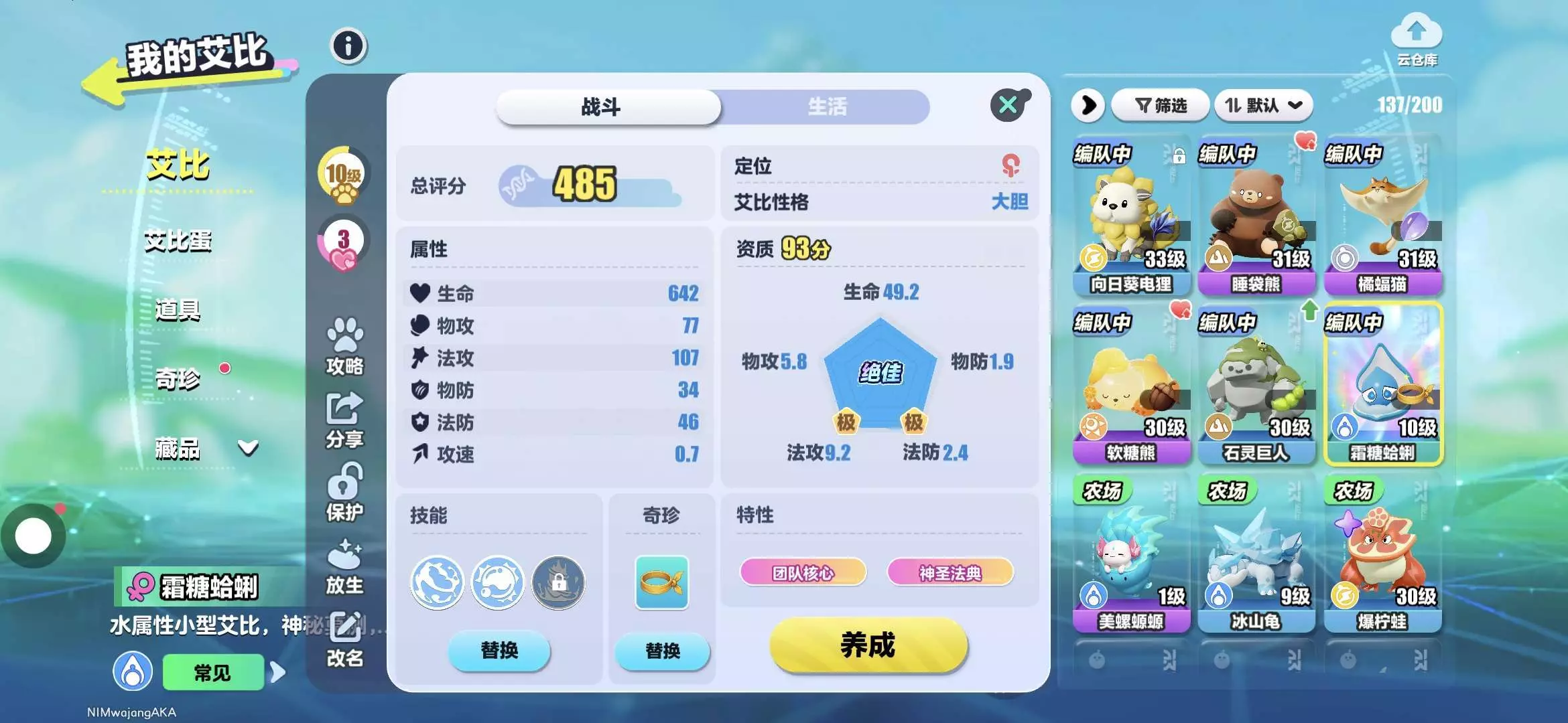 昨天晚上我把一些稀有甜品蛋给孵化了一下,明天早上我一看我发现从稀有甜品单里边孵出来了采光!我激动的差点哭了,那是我第一个采光艾比。