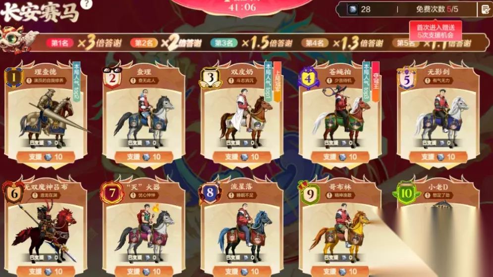 兄弟们,曾经端游火到爆炸的理查德赛马活动,到了手游竟然不温不火,而且还因为出现了bug,导致现在参与赛马的玩家更少了,策划直接慌了。 因为接下来的2月份只有1个古树奇谭玩家,其他的没什么内容。策划一看这不行呀。再这样下去人就跑光了。 于是乎果断出手,对赛马活动进行福利加码,下面让我们一起来看一下官方最新公告: