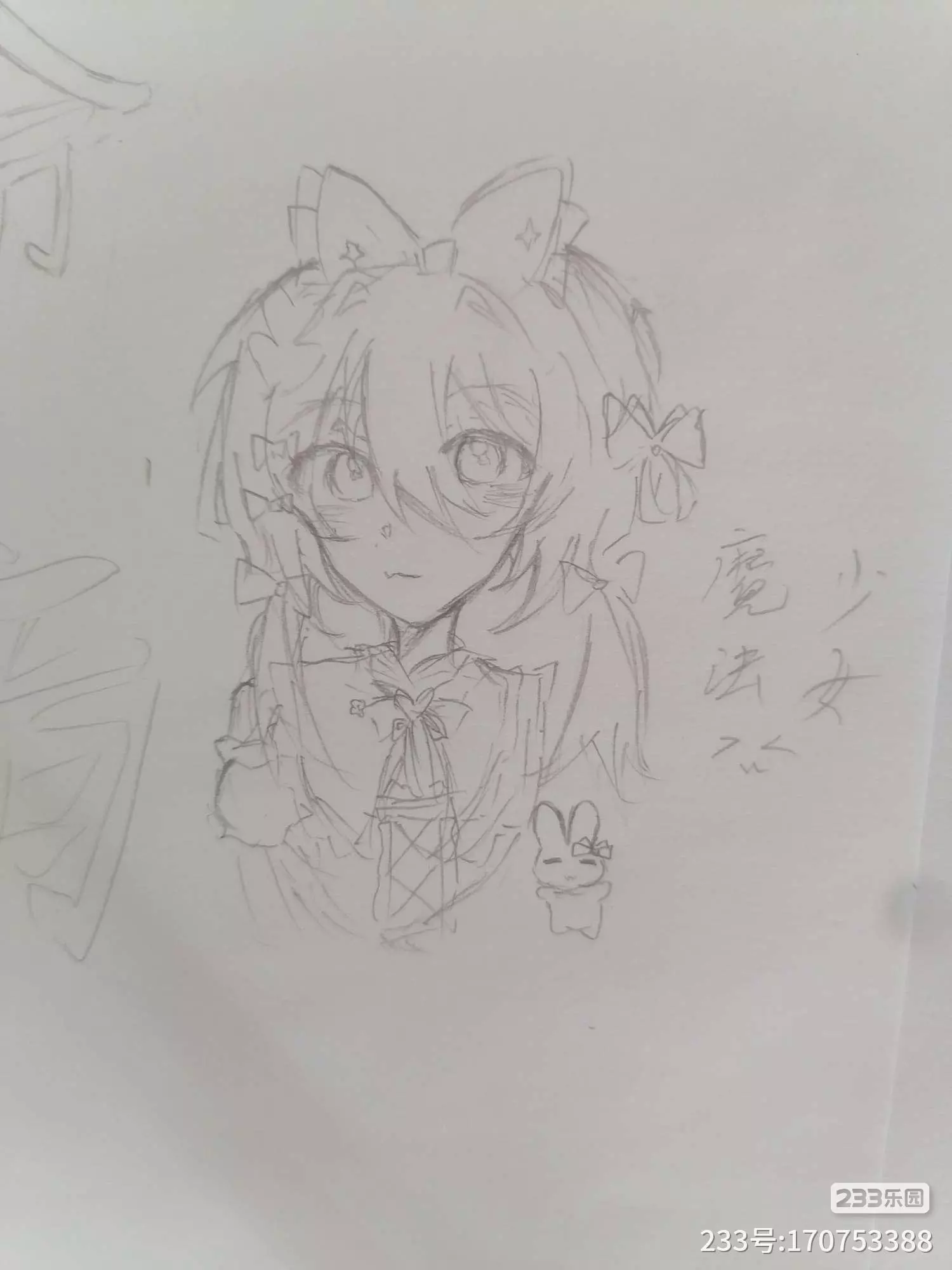嗯,对,估计就是学校要求画手抄报,嗯,对,所以画了一个初音未来,不会画人体请勿喷又画一个芷若oc小兔
