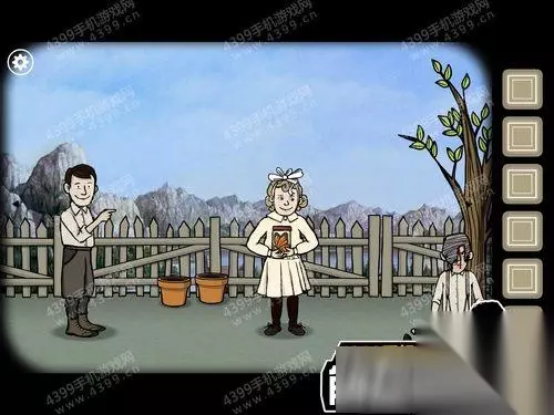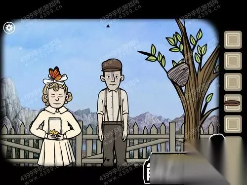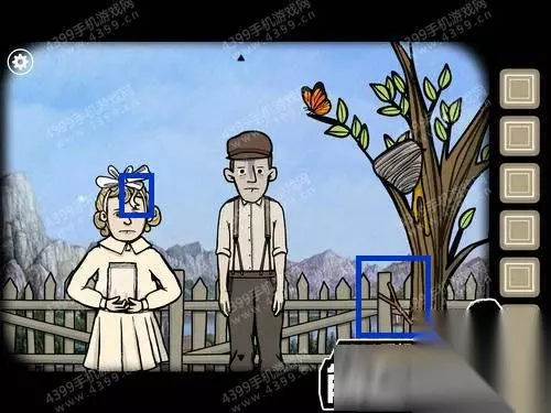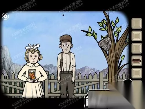 8、然后多次点击右边的男孩女孩,他们会互相推搡,随后右边的男孩生气坐到树下;