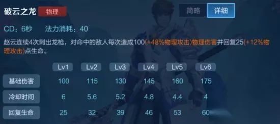 赵云的一技能是赵云的核心输出技能。冷却时间短,伤害高,能减速敌人同时还带个小位移,在追击敌人和逃跑时一技能大大的提高了赵云的灵活性。 无论是打野还是边线赵云都建议主加一技能,一技能等级高以后更快的CD能大大提高赵云的灵活性,降低移速百分比的增加能大大降低敌方英雄的灵活性,此消彼长下想从赵云的手下逃脱是一件非常困难的事情。 二技能:破云之龙