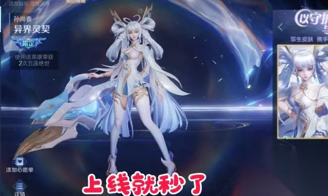 王者荣耀孙尚香异界灵契是双生传说限定皮肤,原价1788点券,首周叠加优惠后仅需1000点券出头即可入手。该皮肤曾因锚点等问题遭玩家吐槽,官方优化后上架10分钟销量便突破新高,即便不玩孙尚香的玩家也多有入手。