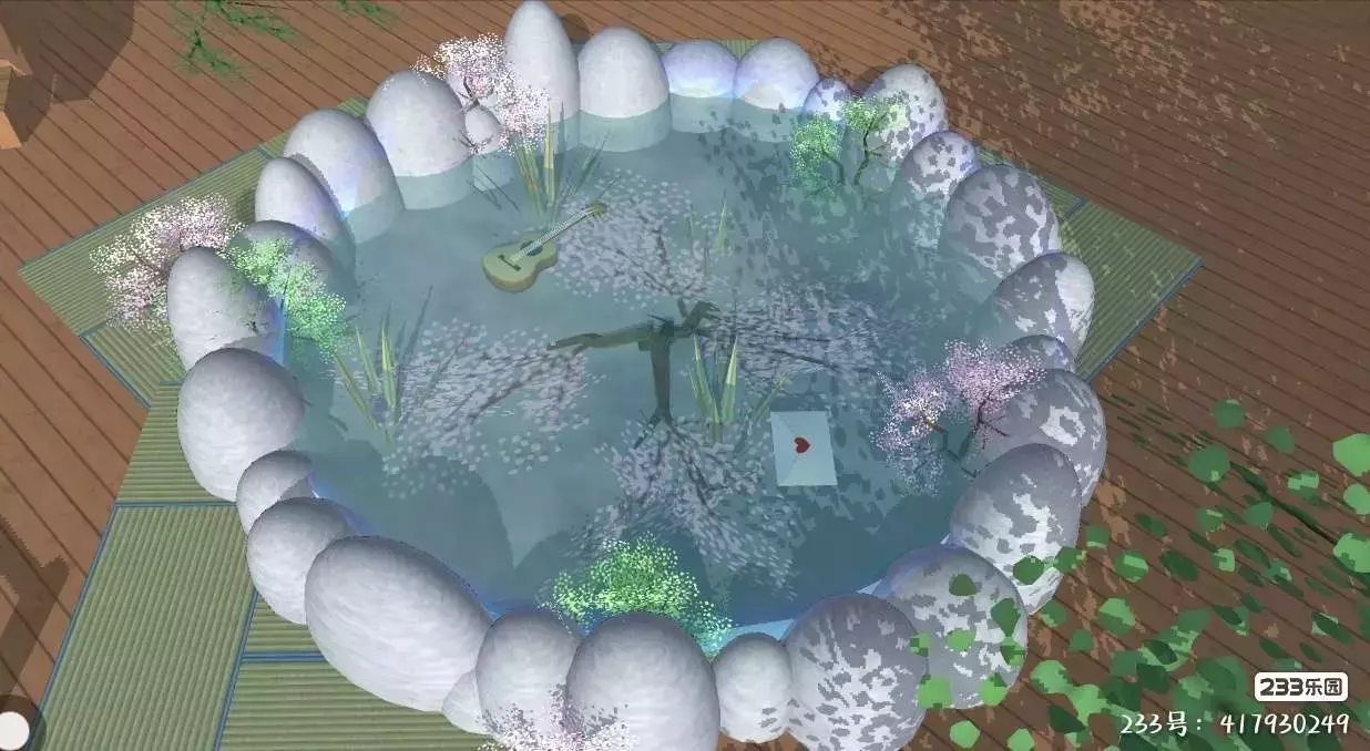 🌳元素:长廊,水池,花,还有树,樱花(老演员🌲了)还有……[自己想🌲吧!😝](棒!!!!)
