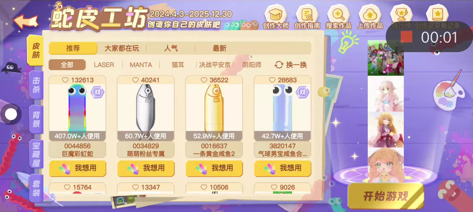 换上自己做的蛇皮玩一把