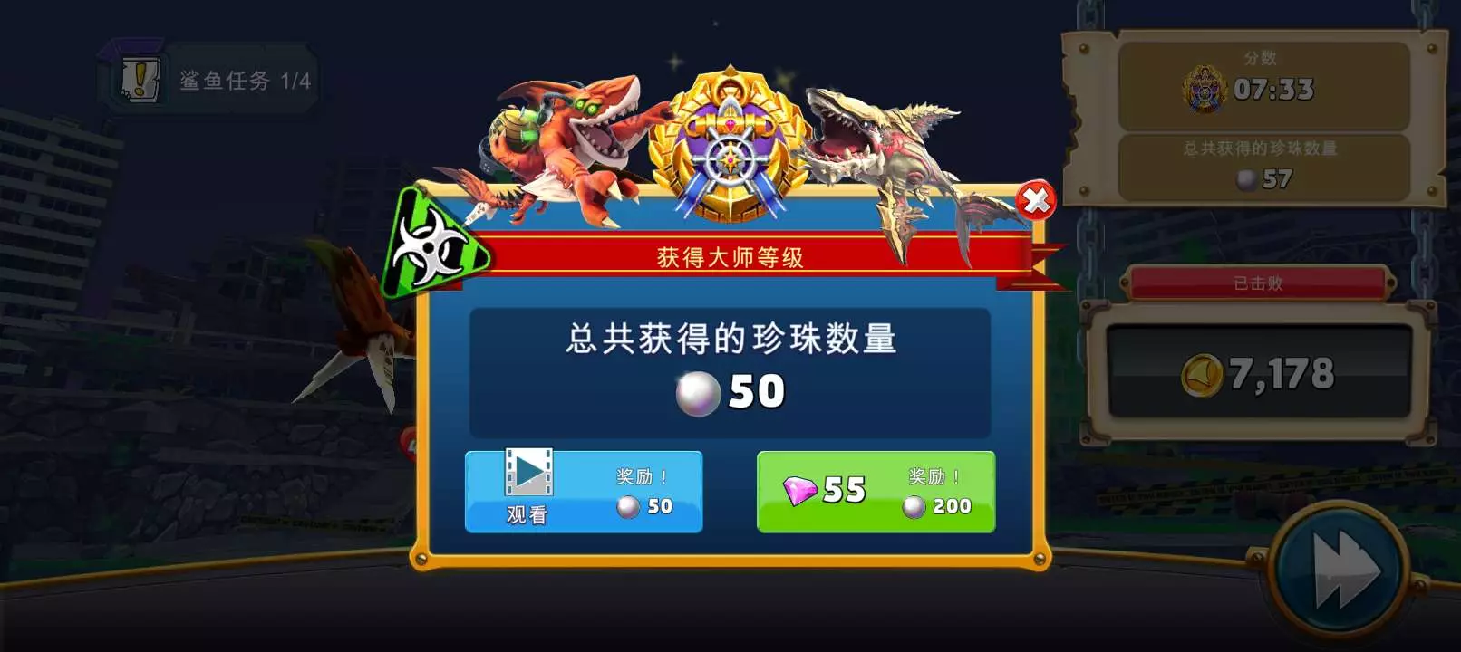 那些异变的鲨鱼,第一个远古巨齿鲨是大大大的巨齿鲨形态,第二个,在干啥?是大大大的跟那个鲨鱼的形态,