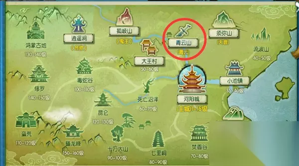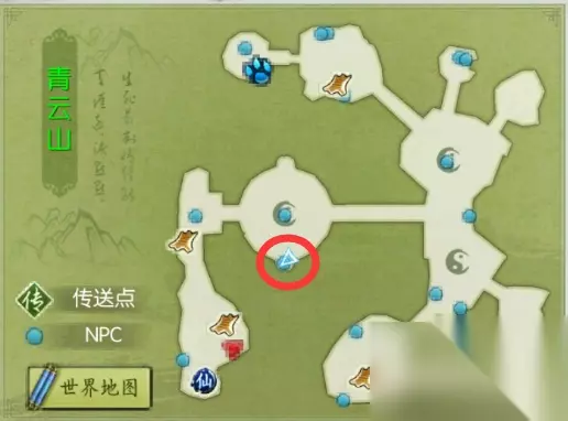 4.山河扇: 依然在是青云山,来到如图位置的竹林,需要手动攻击周围的黑竹,砍够1000个后会受到系统邮件,获得山河扇。(建议组队)