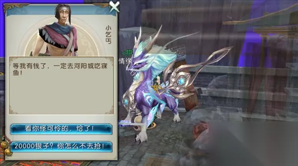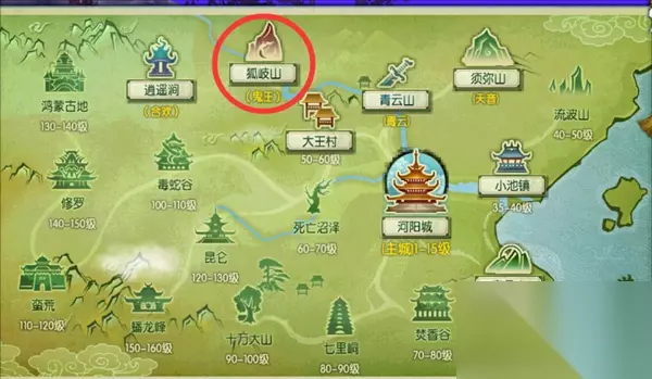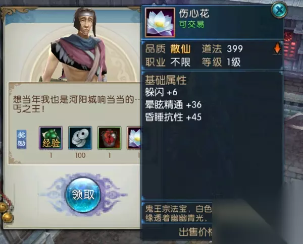 2.伤心花: 任务地点:狐岐山(鬼王) 如图位置找到小乞丐,触发隐藏任务,小乞丐会找你要三次20000银币,共60000银币,之后他会告诉你隐藏道具伤心花的位置,自动寻路即可获得:伤心花。