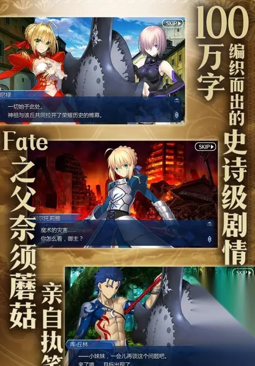 t15_2-t15_1:25.0 标签: 英灵 Fate无论是动漫或游戏都有着超高的人气,那么手游方面有哪几款是以fate为核心的?今天小编就针对fate游戏排行榜前十名推荐2021的内容,详细的为大家推荐几款以fate为主的游戏,希望帮助到各位。 1、《命运-冠位指定》 一款以命运之夜为核心背景的日系手游,玩家们将在游戏内使用大量的英灵进行战斗,最终目标则是为了获取圣杯。