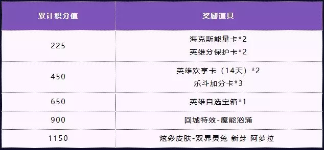 活动期间,召唤师参与测试答题后,会根据答题结果与过往数据生成专属推荐英雄,选择推荐英雄参与试炼或完成试炼任务,均可获得试炼积分,累积积分可按照奖励轨道顺序获得活动奖励,奖励公示如下: