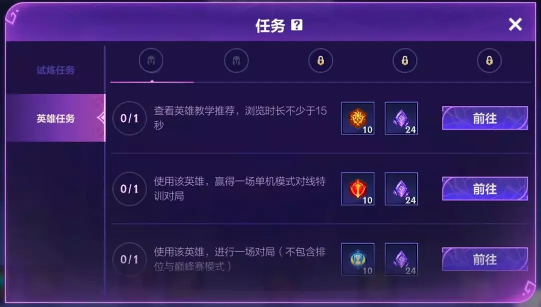 活动任务分为通用试炼任务与英雄专属任务。