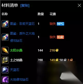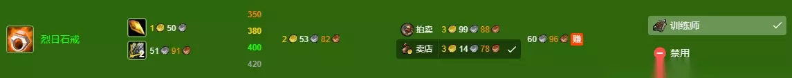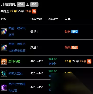 wlk珠宝400-450最省材料攻略十分重要,我们可以制作烈日石戒、致密天蓝石、质朴之大地侵攻钻石来升级。下面小编就为大家带来这些珠宝的图纸获取方式,一起来了解下吧。 wlk珠宝400-450最省材料攻略 数据以一区 吉安娜 部落为例,其他区服请参考:WLK专业技能冲级宝典 400~420:烈日石戒 通过拍卖或者去商店中直接购买获得。