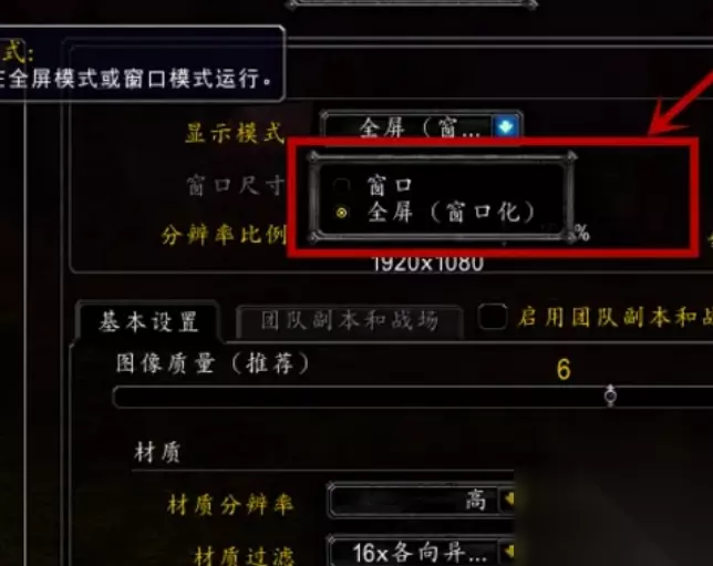 4、可以看到窗口和全屏两种模式,玩家要点击前面的点勾选后,即可设置成全屏或者窗口模式,如图所示。