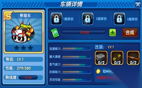 No.4能攻能守——熊猫车 初始性能279,终极性能380,这辆排行榜周奖励会发放强化券的熊猫车具备非常高的成长性,它的三个解锁技能也很均衡,有攻有守,具备了PK前三神车的底气。而且,作为《跑跑卡丁车》最具特色的车型,是不是很有收藏意义?