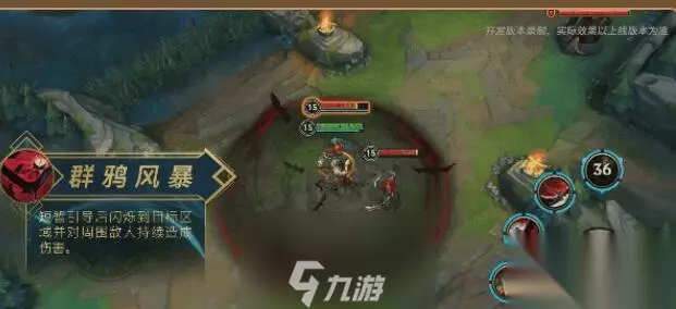 R技能:群鸦风暴 解析:身体之内有恶魔快速的膨胀,吟唱之后确定目标召唤出来超多的暗鸦围绕着本身,区域之内的敌人受到伤害。