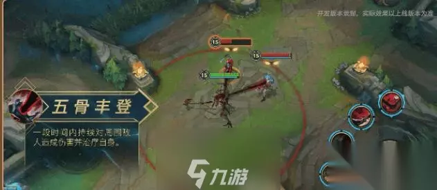 W技能:五骨丰登 解析:显露出来一个被荆棘和藤蔓遮住的实体,使用一个黑红色的特效来吸走敌人的灵魂;