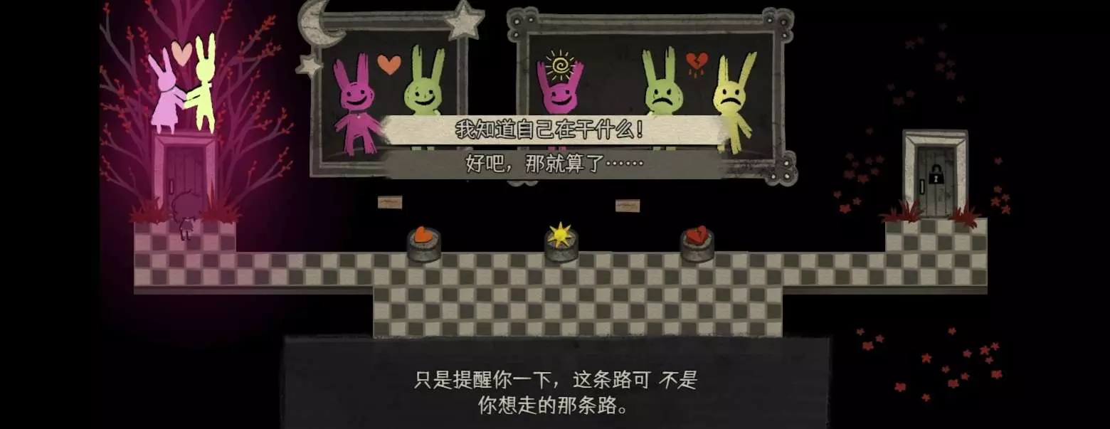 这里先告诉你们几个分线结局另外在刚开始安德鲁让莉莉去拿电池去到房间拿到电池然后注意!!!这里不要把电池装遥控器可以直接触发电视打开 这个电池到后面去焦油灵魂那里那个遥控车装上可以开启幻象房 幻象房要在主菜单会出现一个视野范围 需要过剧情时解锁 接下来先给你们讲 葬礼 腐朽 友情线 爱情线 囚禁线怎么进 第二章逃出来后到小镇过剧情 在公园里发现黑衣人后会有两个选项 开枪和开枪!!!这里是囚禁线和剧情线的重要分支 到父母家把他们绑在地下室会有两个选项 一个是选择不相信安德鲁相信护符和怎么可能 选第一个 选第二个的话是进入友情线和爱情线但是进不了第三章 图八是爱情线 图九是友情线 按图选即可 另一个选项父母朝你抛出橄榄枝 接受 或拒绝 这里选接受 接着过剧情莉莉做梦最后小关卡图五有三个门过完就到图六这 一定要有这个画面不然进不了第三章 后面会给你两个选项这两个选项就关乎于我前面说的开枪和开枪!!!选开枪就没有反杀选项 这里想进囚禁线就选开枪反杀 正常线就选没关系 都是可以进第三章
