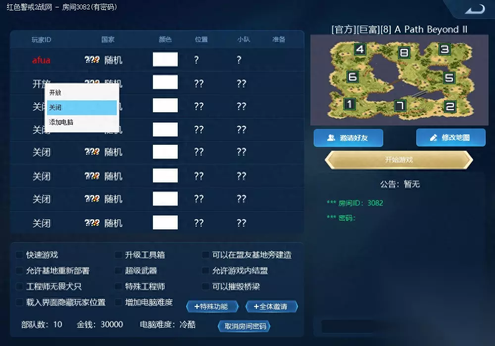 所有人准备房主就可以开始游戏了 如果对战人机,可以选择一个小队 好了 快叫上你的好友开始吧