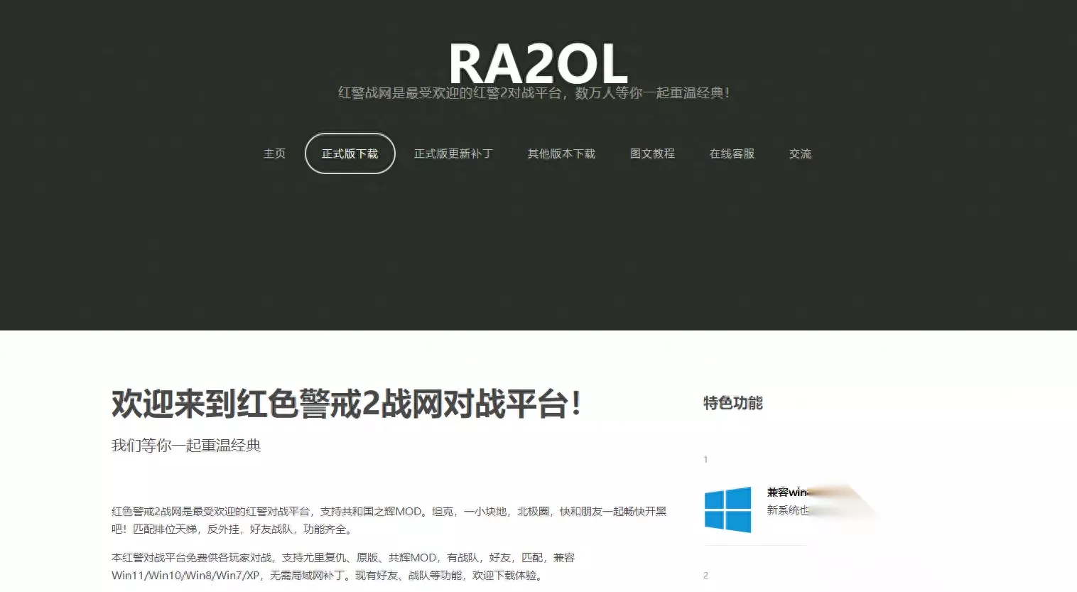 红色警戒作为80,90后的回忆,是较早在网络盛行的游戏。回忆过往,总会让人去怀念年少在红警大杀四方的时光,如今在这浮躁的年代,想叫上好友再去来一盘红警,由于非局域网的限制,无法跟好友通过家用网络一起游戏,接下来我会分享下家用网络红警的联机方式,联机方式非常简单,首先下载一个红警对战平台。 红警之家- 红警战网对战平台联机版_适配WIN10/WIN11系统